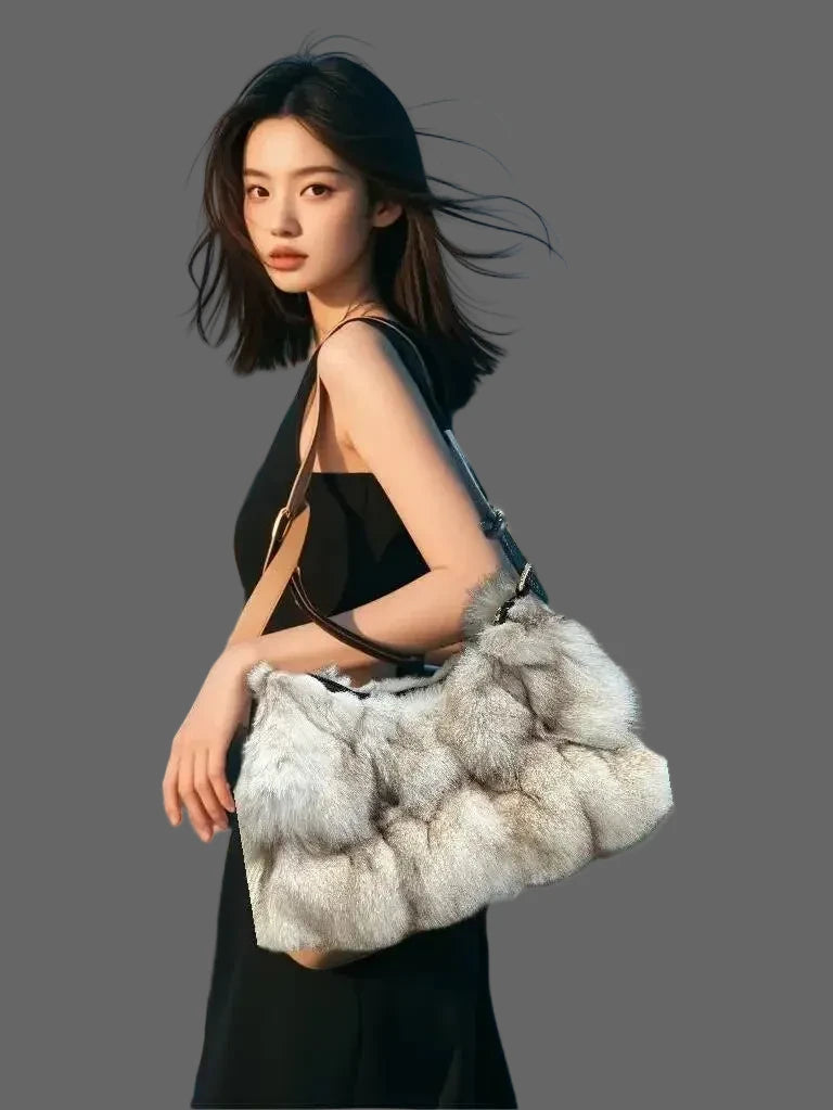 Sac Bandoulière Fourrure Renard Argenté - Hiver 2026